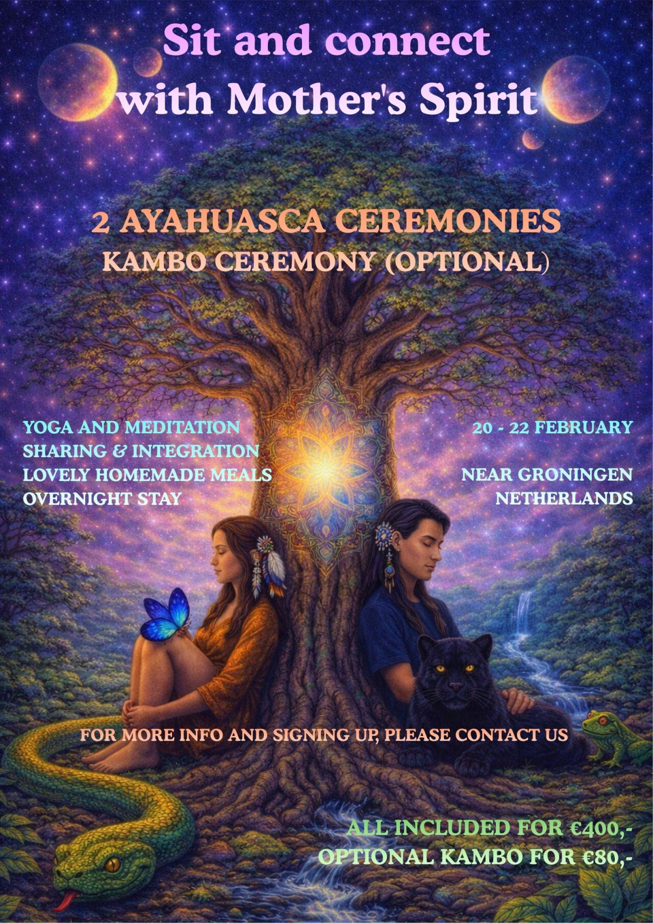 3-day ayahuasca retreat. Kambo ceremony optional. For more information and prices please contact us at +31 6 83582808.